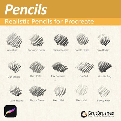 Includes the best selling GrutBrushes Procreate Pencils set.