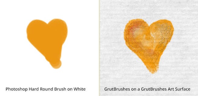 Left: Regular brush on a white background Right: GrutBrushes Art brushes on an Art Surface